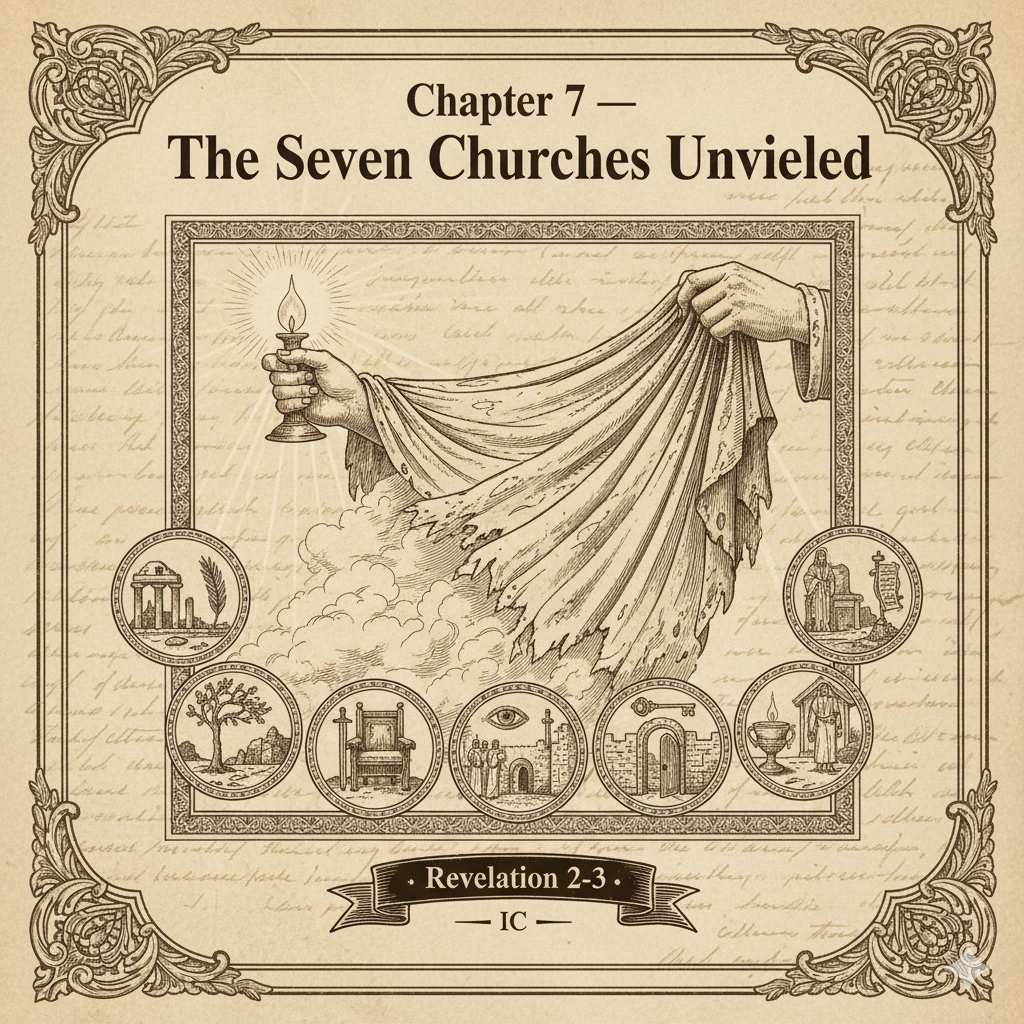 Ephesus, Smyrna, Pergamos, Thyatira, Sardis, Philadelphia, Laodicea — each represents a spiritual condition. Philadelphia alone is faithful.