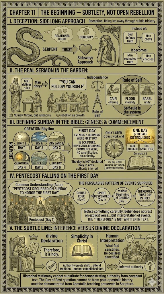 Only after establishing this standard can the question of Sabbath and Sunday be examined properly. For if a covenant sign was altered, the alteration must be found within the apostolic teaching itself. If it cannot be found there, then no appeal to “the early church” can supply that authority.