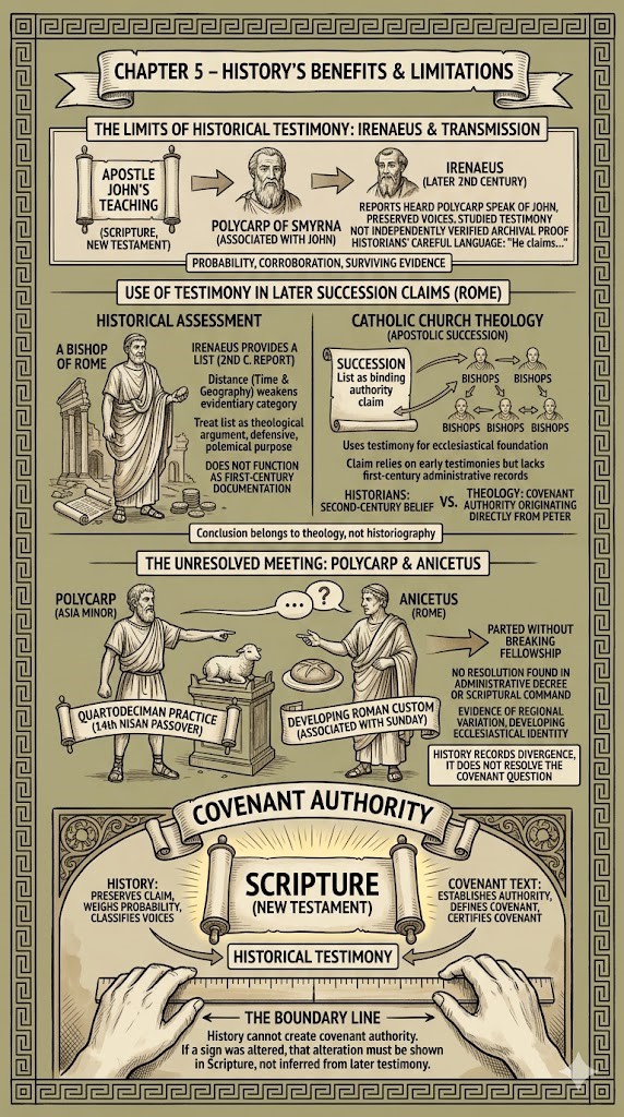 “Claims of apostolic succession rely on post-biblical historical testimony. However, covenant authority must be demonstrated from apostolic teaching preserved in Scripture. Therefore, the question of Sabbath and Sunday must be decided from the New Testament record, not from later institutional continuity claims.”